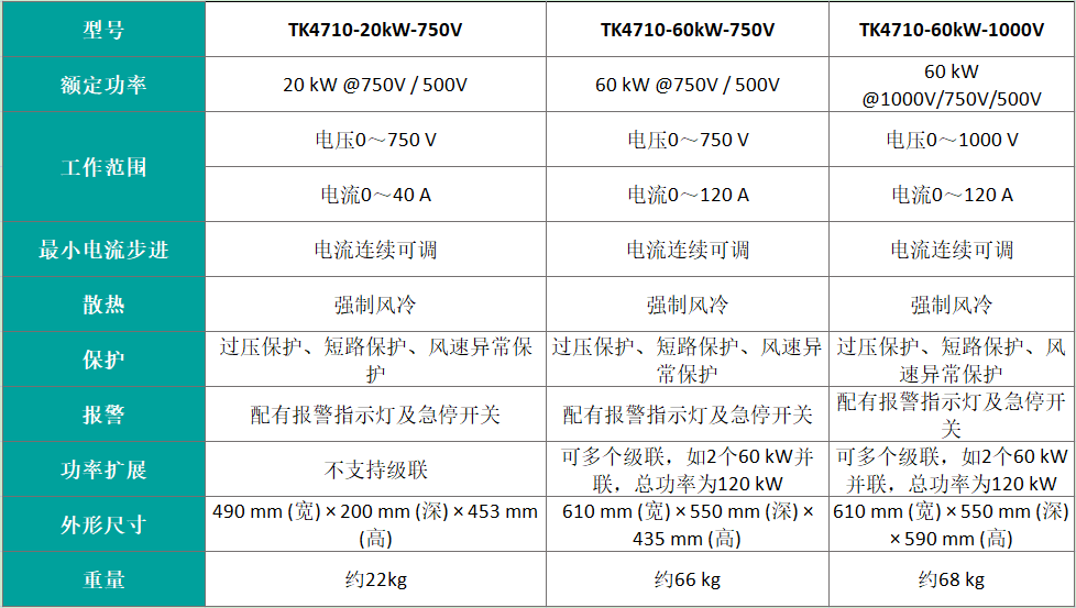 产品介绍 TK4710 是一款直流可调阻性负载箱,额定功率20kW和60 kW可选,面板配有标准直流充电插座,可搭配非车载充电机现场测试仪等使用,实现对电动汽车非车载充电机的现场检定。 产品特征